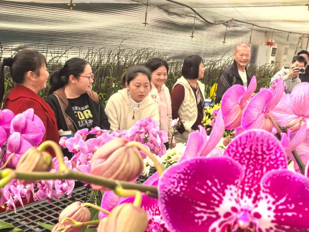 据介绍,蝴蝶兰是“兰中皇后”,具有长相美、花期长、养护易等优点。在产业层面,蝴蝶兰在设施条件下广泛栽培,从组培繁殖、种苗培育、开花株生产、组盆到销售的各环节对产业发展均有显著带动效果。